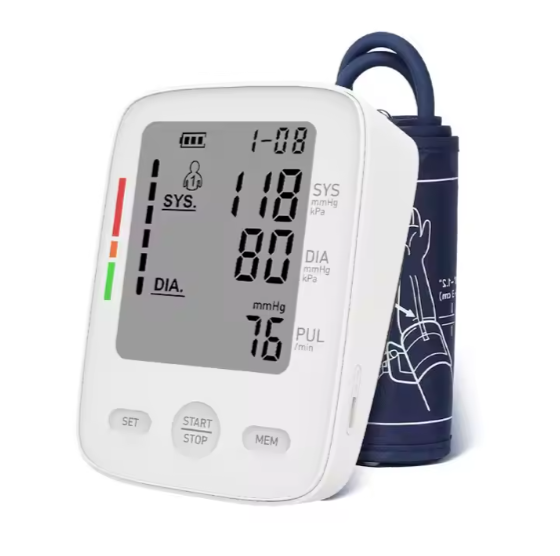Appareil de mesure automatique de la tension artérielle, monté sur l'épaule et doté d'un écran LCD.