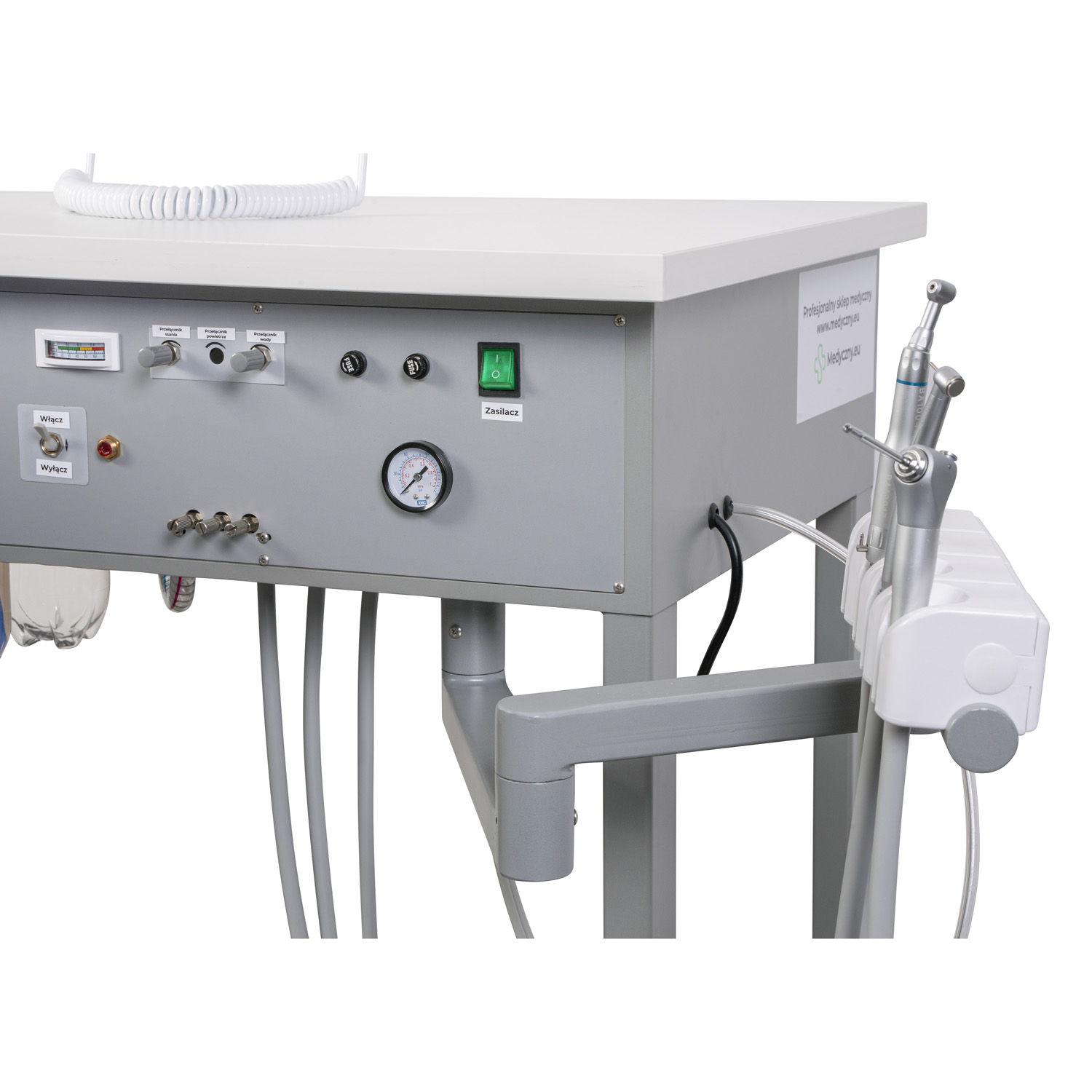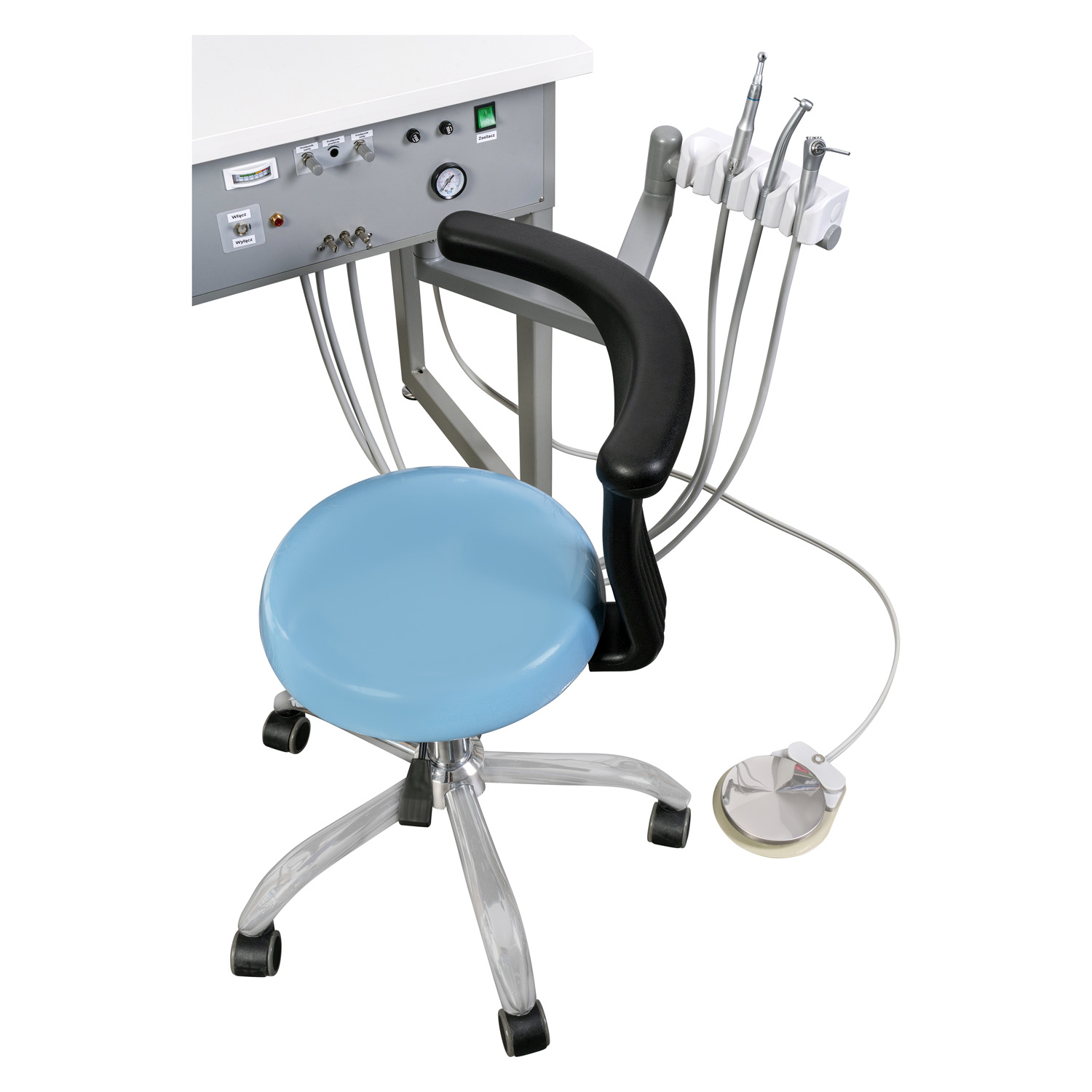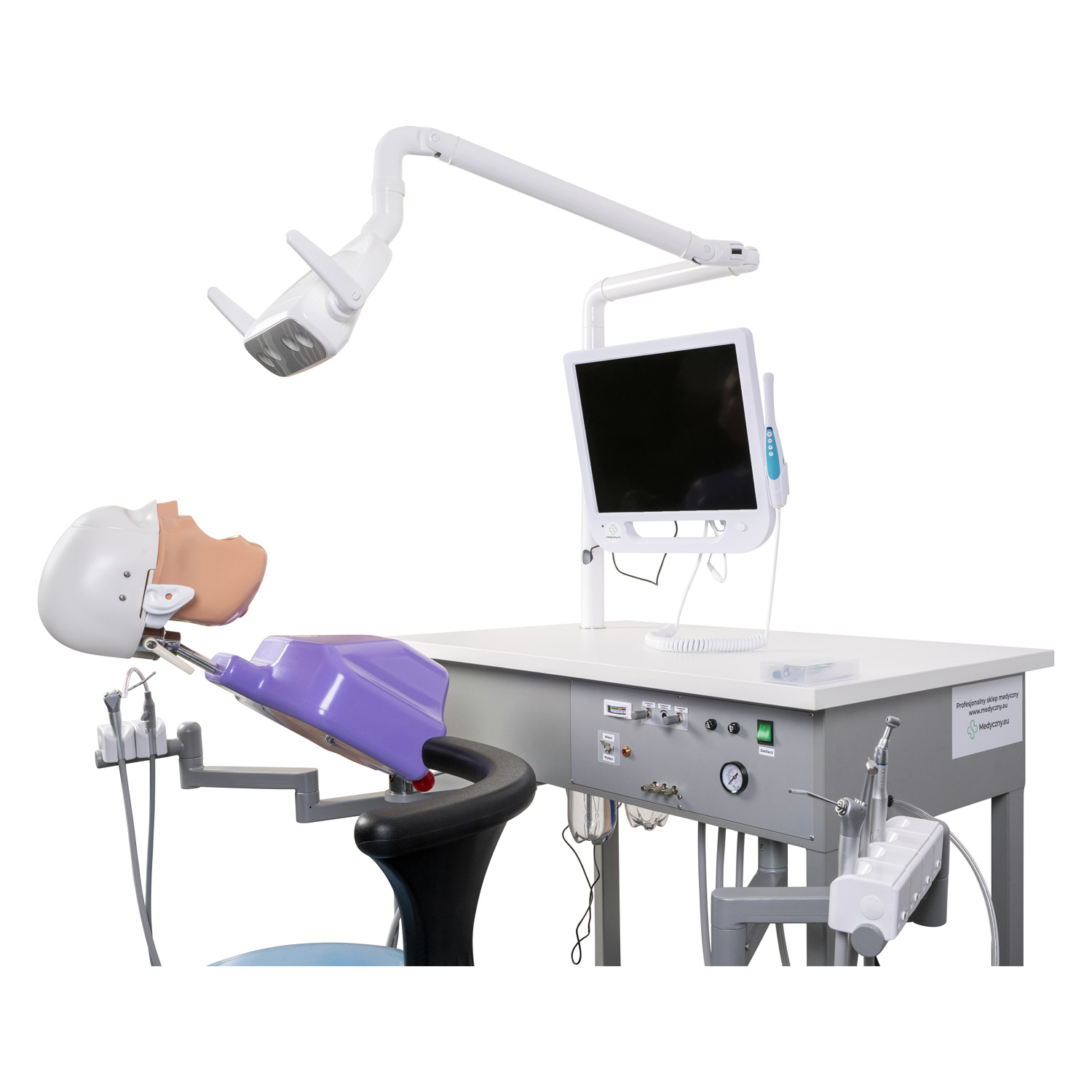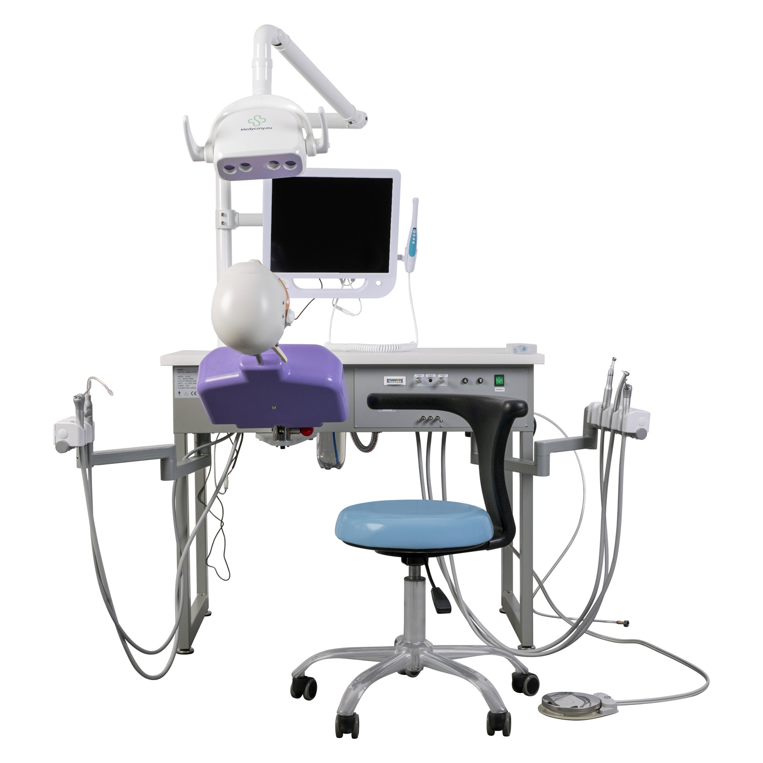 Le moniteur intégré et le porte-accessoires facilitent la pratique et l'analyse du travail des étudiants. La conception de l'unité a été développée pour reproduire fidèlement les conditions d'un cabinet dentaire, ce qui permet d'enseigner la posture correcte, l'organisation du poste de travail et les principes d'asepsie.