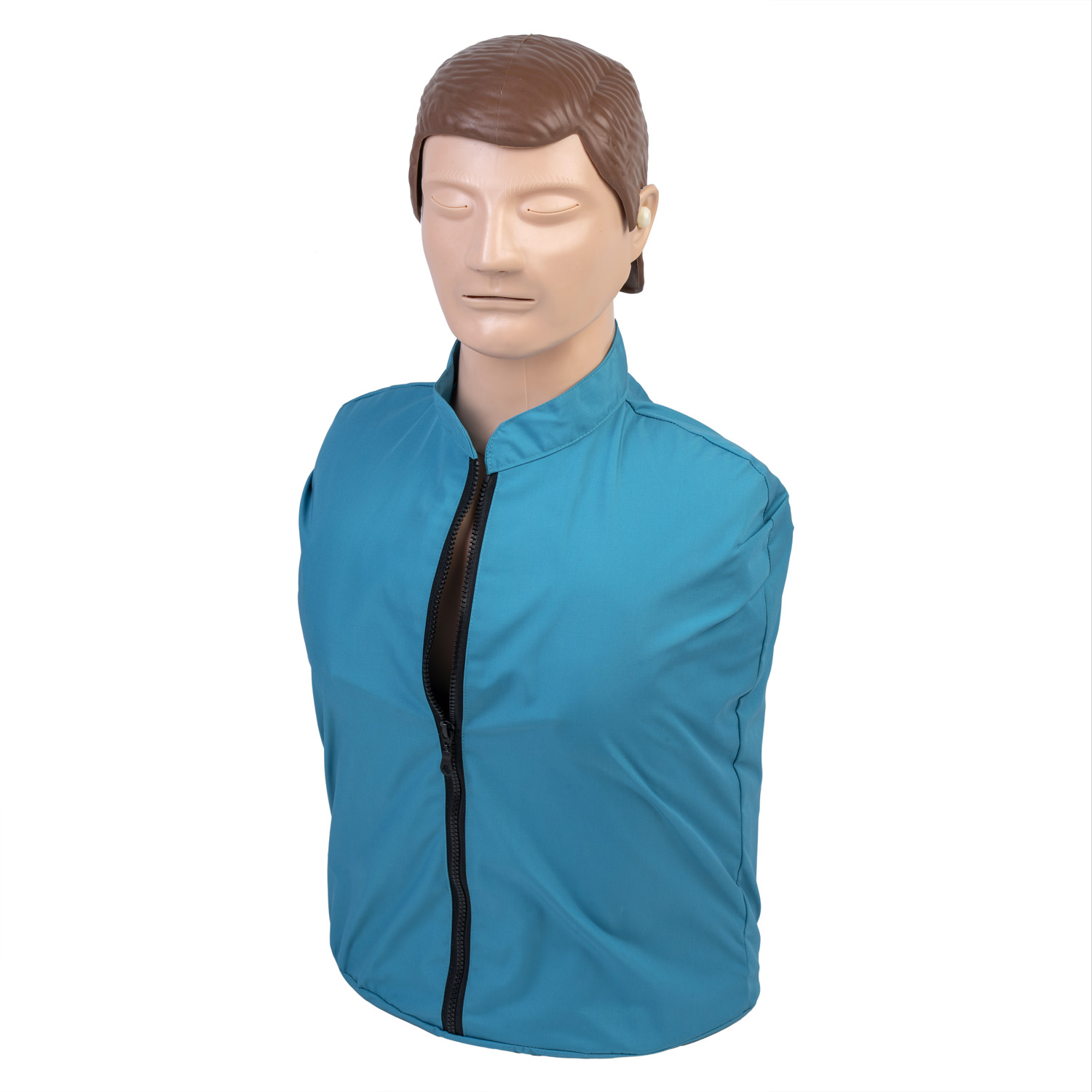 Ce fantôme réaliste, en forme de torse d'homme adulte, reproduit parfaitement son anatomie et sa physiologie. Il est doté de fonctionnalités avancées pour l'enseignement de la réanimation cardio-pulmonaire (RCP) et des procédures liées au retrait d'un corps étranger des voies respiratoires. Pendant la RCP, la poitrine du mannequin se soulève naturellement.