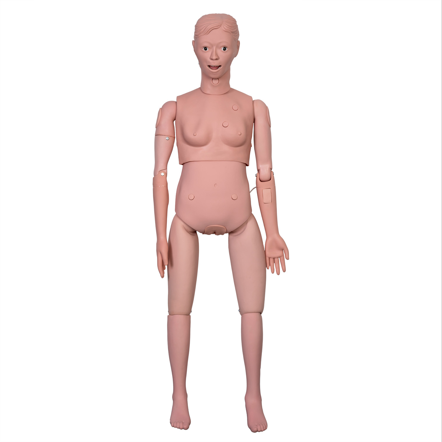 En outre, le mannequin est équipé des éléments suivants articulations mobiles permanentes, Les éléments anatomiques reproduits, les traits naturels du visage et les proportions réalistes du corps. Permet des exercices de soins infirmiers et de procédures médicales.