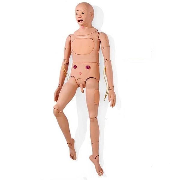 Un fantôme multifonctionnel et hermaphrodite, ayant la forme d'un homme adulte moyen, reproduit parfaitement son anatomie et sa physiologie, ce qui permet de donner des leçons pratiques réalistes sur l'exécution des procédures médicales.