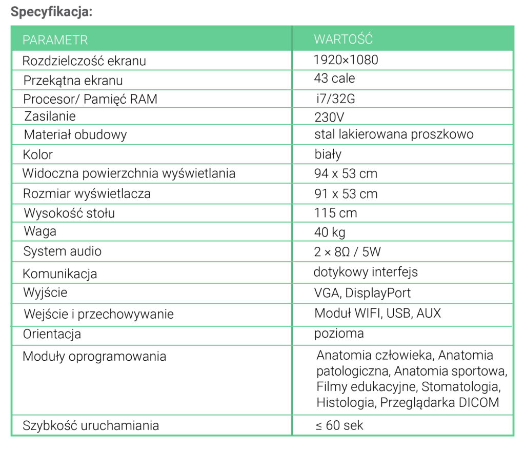 La table d'anatomie virtuelle 3D est une solution innovante qui associe une technologie interactive, une qualité d'image élevée et un logiciel éducatif riche en polonais, permettant une exploration réaliste et captivante de la structure du corps humain.